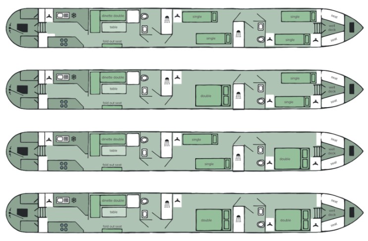 Vi samarbeider med en av Englands største og mest pålitelige kanalbåtutleiere. De bygger båtene selv og leverer konsekvent høy standard både når det gjelder komfort og service.